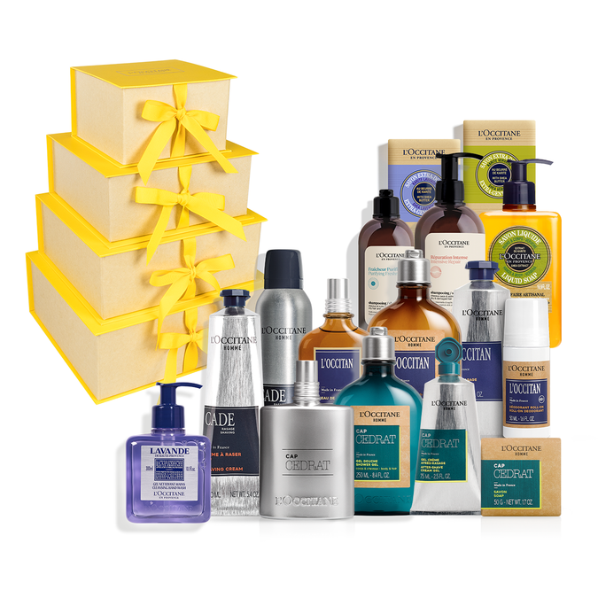 Kuyov uchun nafis parvarish kosmetikasi to‘plami. Bu yerda benuqson ko‘rinish uchun hamma narsa jamlangan: soflik va tetiklik baxsh etuvchi yuz tozalash mahsulotlaridan tortib, silliqlik va qulaylikni ta’minlaydigan soqol olish vositalarigacha. Shuningdek, juftingizga ishonch bag‘ishlaydigan nafis iforlar ham bor. To‘plamning har bir elementi fransuzcha nafislik va sifat ruhi bilan yo‘g‘rilgan.